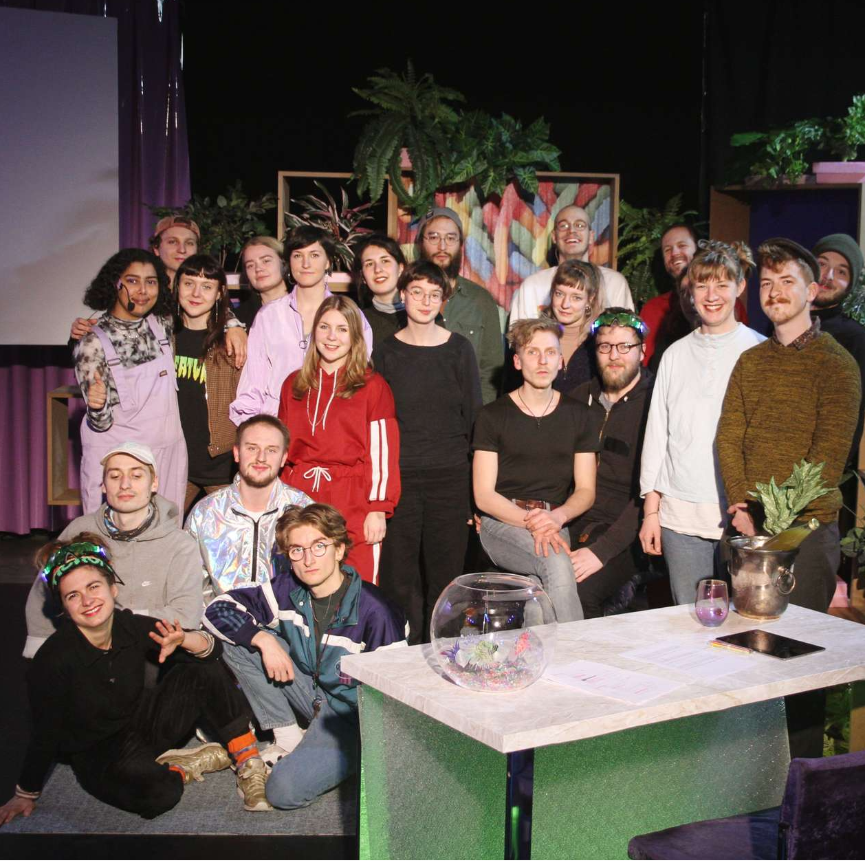 Auch wenn wir drei das Unternehmen gegründet haben, verstehen wir uns selbst als ein Netzwerk aus Menschen, einem Kreativkollektiv, welches sich aus den unterschiedlichsten Feldern (Medien, Theater, bildender Kunst, Gaming) mit den verschiedensten Kompetenzen und Interessen (Bühnenbau, Kostümgestaltung, Redaktion, Licht- und Kamerakonzeption) zusammensetzt und sich gegenseitig bei der Ideenfindung und -weiterentwicklung bis hin zur Umsetzung unterstützt. Unser gemeinsames Interesse liegt im kritischen Recollagieren, Hybridisieren, Verschneiden und Mutieren von bereits vorhandenen Showformaten mit einem wachen Auge auf Strukturen und Inhalte, ihren Geschichten und ihrem Eingebettetsein in der Medien- und Kulturlandschaft. Neben der Weiterentwicklung und Realisierung von Showformaten steht bei uns auch die Forschung im Vordergrund: So arbeiten wir außerdem an Workshop- und Seminarformaten, um unser fortlaufend gesammeltes und gewonnenes Wissen auf dem Weg von der Konzeption zur Produktion von Unterhaltungsformaten an andere weiterzugeben und zu vermitteln. So haben wir für das kommende Wintersemester 21/22 an der Stiftung Universität Hildesheim einen Lehrauftrag zum Thema "Show-Mutationen” erhalten und hoffen bald mit der Bundesakademie für Kulturelle Bildung Wolfenbüttel eine Workshop-Reihe zu erarbeiten.