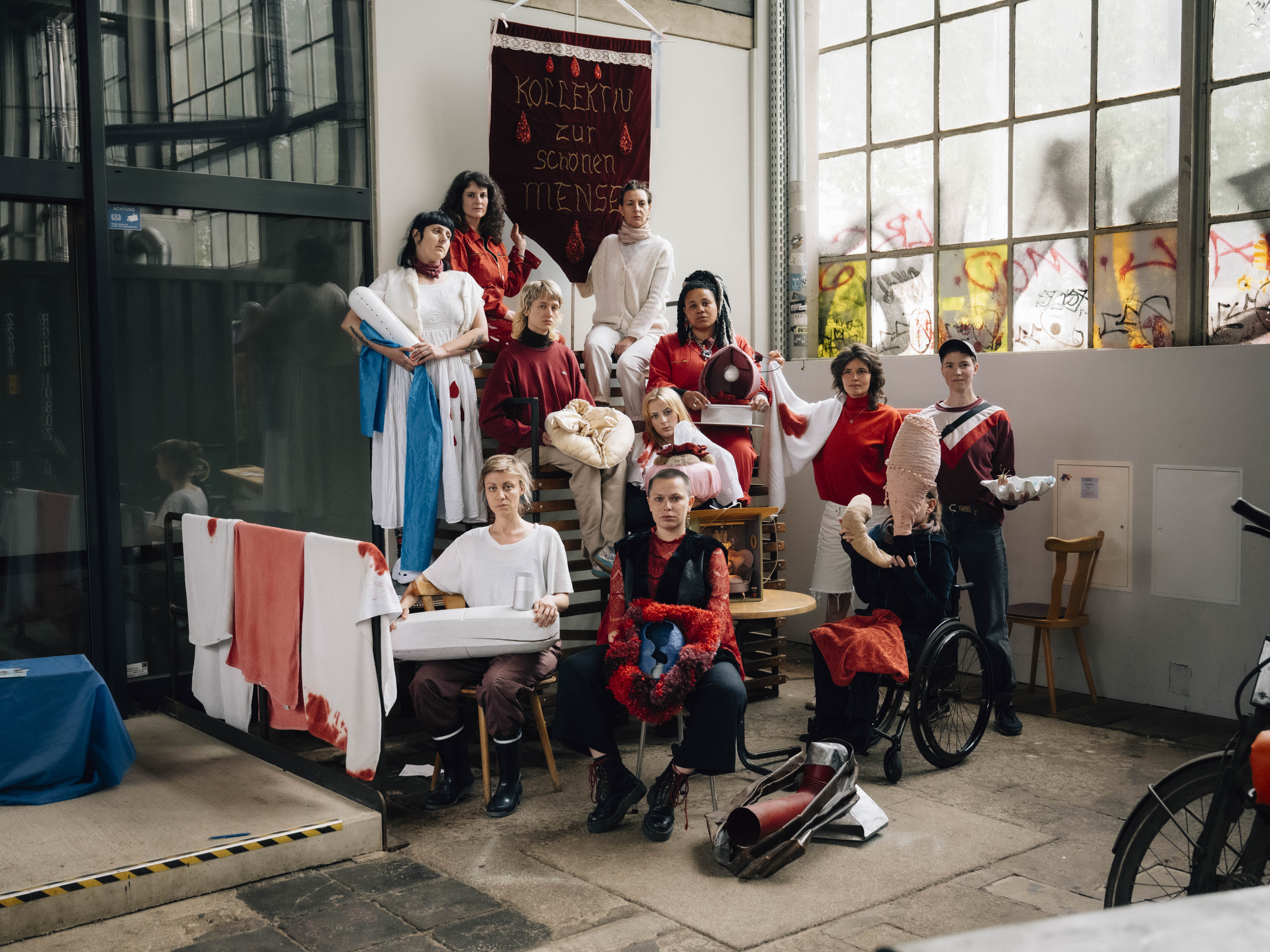 Das „Kollektiv zur schönen Mense" lädt jährlich ein zum Weltmenstruationstag. An diesem Tag und in verschiedenen Ausstellungsformaten und Installationen, sowie Performances wird Menstruation nicht nur sichtbar, sondern hörbar, spürbar und erfahrbar - jenseits von Tabus und Klischees. Das Kollektiv öffnet einen Ort für Austausch, Kunst und körperpolitische Sichtbarkeit. Die Ausstellung „We all got the juice" versammelt Menstruationsgeschichten in Form von künstlerischen Objekten, hörbar gemacht durch Audios und begleitet von Performances und Workshops.